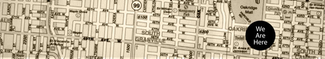 , turn LEFT on W49 Ave. then a RIGHT on Ash St. (borders the park). Take Ash St. almost to the end and turn RIGHT at the small alley way. Ahead is CPC's parking lot.